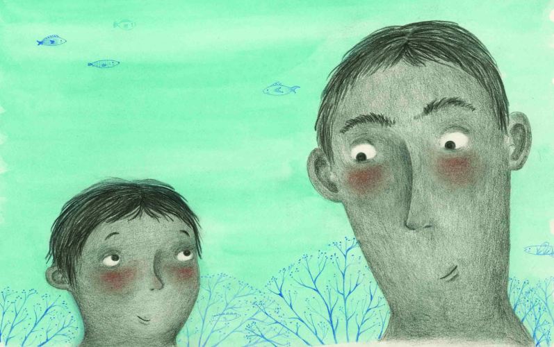 Un libro lleno de trombas de peces, como emociones, que nadan con este niño: lo sumergen en un abismo marino de enojo y lo someten a sus impetuosas corrientes. Hasta que encuentra la mirada de su padre y las aguas se calman. Si has tenido ganas de gritarle a tu papá, y jalarte los pelos de la desesperación, pero luego has querido también contentarte con él, te verás reflejado en este libro: paisaje marino y afectivo para desahogarse y salir a respirar a la superficie.