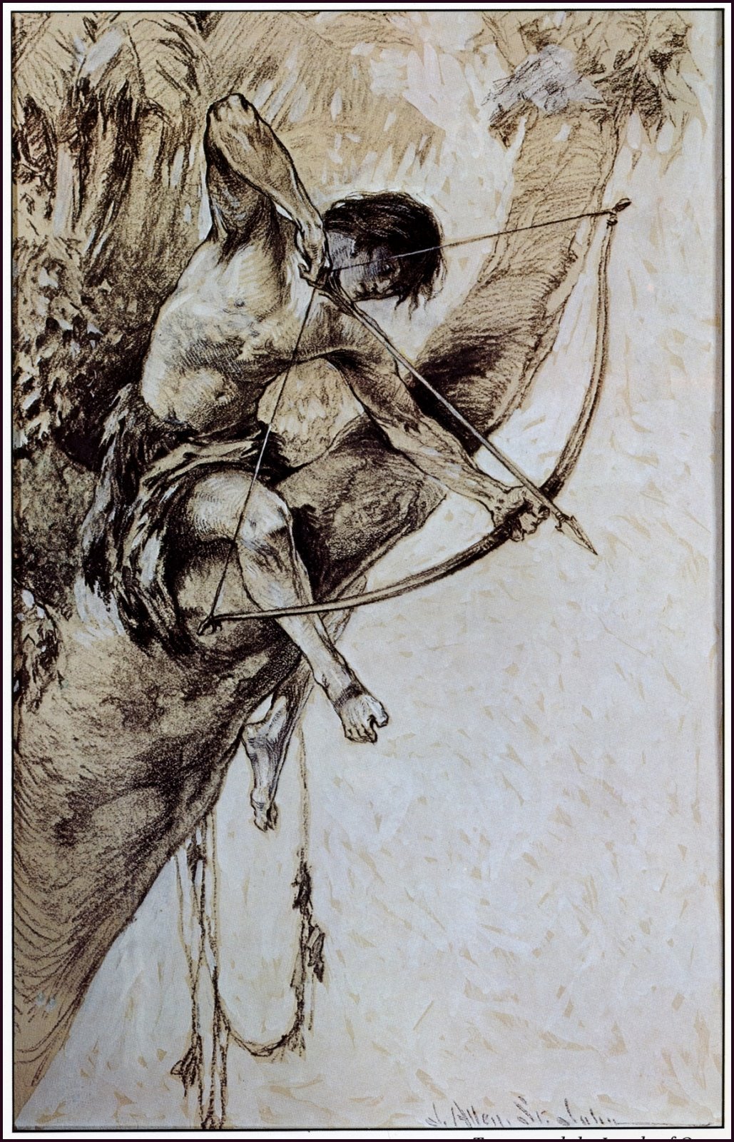 Ilustración de portada de la primera edición del libro «Tarzan y las joyas de Opar» publicada en 1918. Autor: J. Allen St. John (1872-1957).