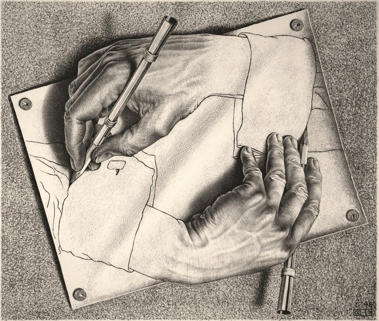 M. C. Escher, Manos dibujando, 1948.