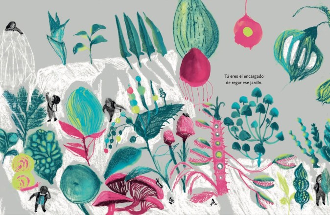 Raquel Echenique, quien ya había demostrado su maestría para ilustrar poesía y dibujar aves en Diez pájaros en mi ventana de Felipe Munita (Ekaré Sur, 2016), aquí prueba un trazo menos fino y silencioso, más juguetón y figurativo, aunque no tan detallado como en su Vuelo de pájaros americanos (Amanuta, 2018).