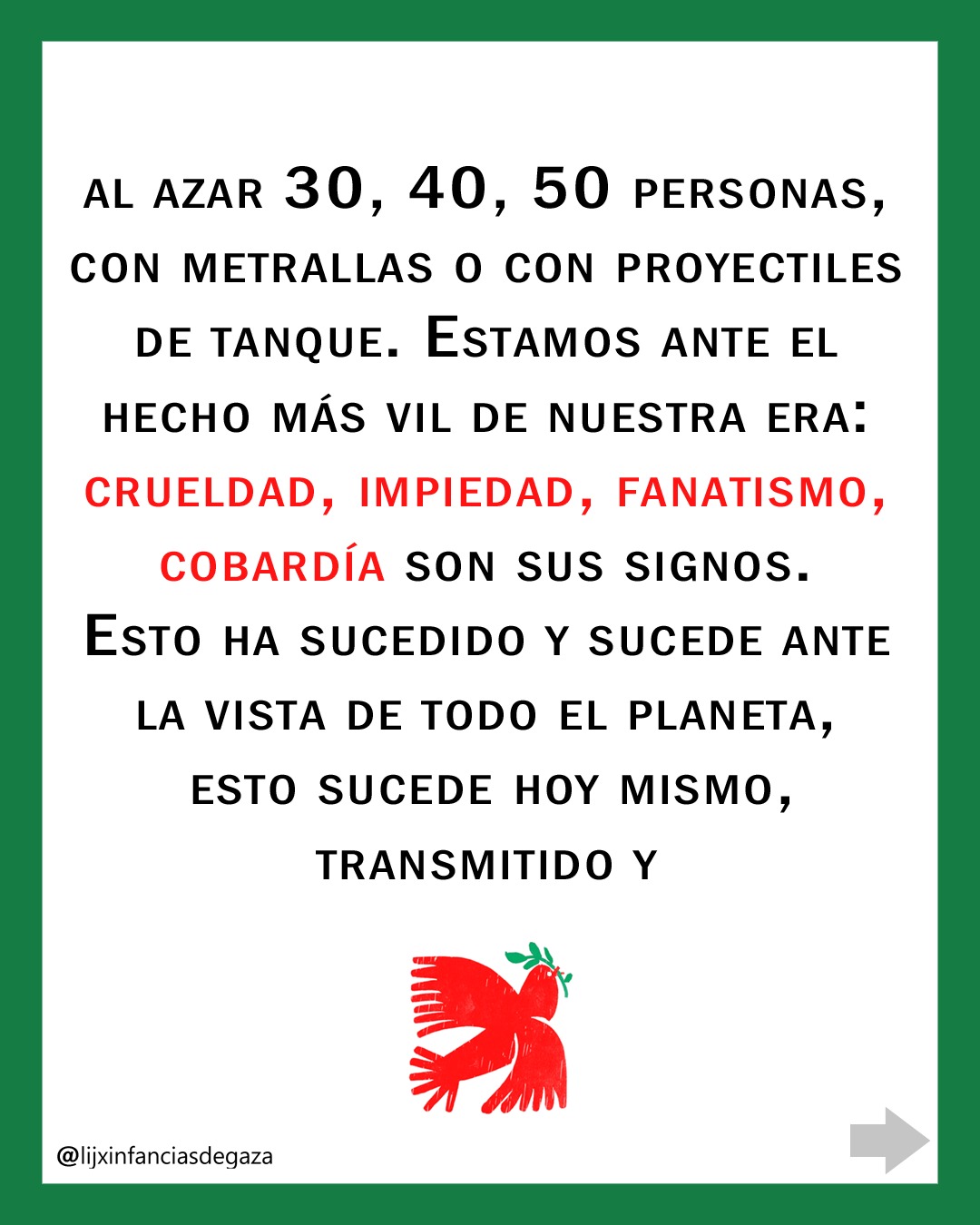 Publicado 26/07/2025 a las 1080 × 1350 in Bichitos de luz en la oscuridad, un minuto de silencio: Ma. Teresa Andruetto + ¡ALTO al genocidio en Gaza!